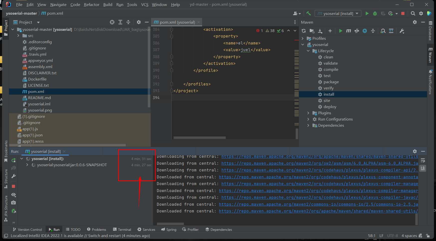 在项目路径下生成class文件和jar包,同时在本地maven仓库生成jar文件