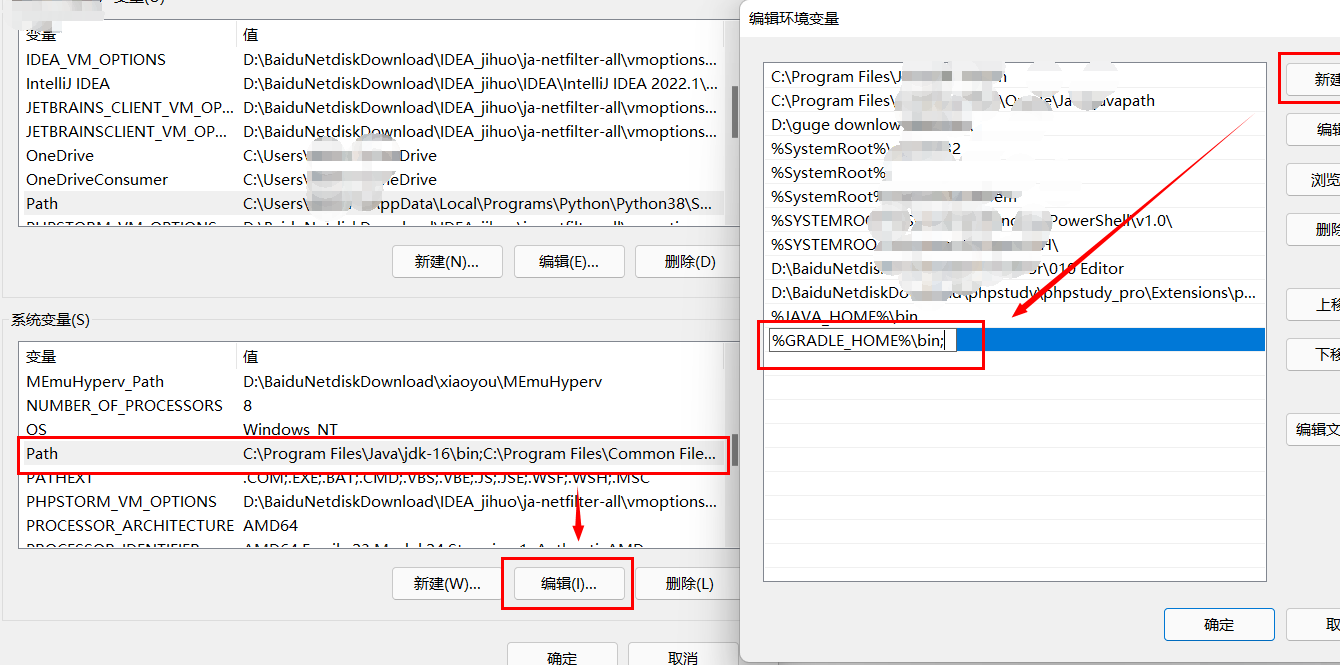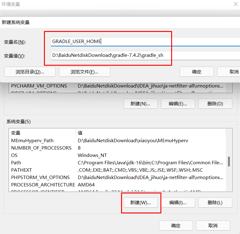 变量值:D:\BaiduNetdiskDownload\gradle-7.4.2\gradle_sh(自定义Gradle仓库目录)