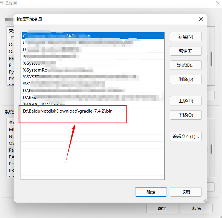 变量值:D:\BaiduNetdiskDownload\gradle-7.4.2