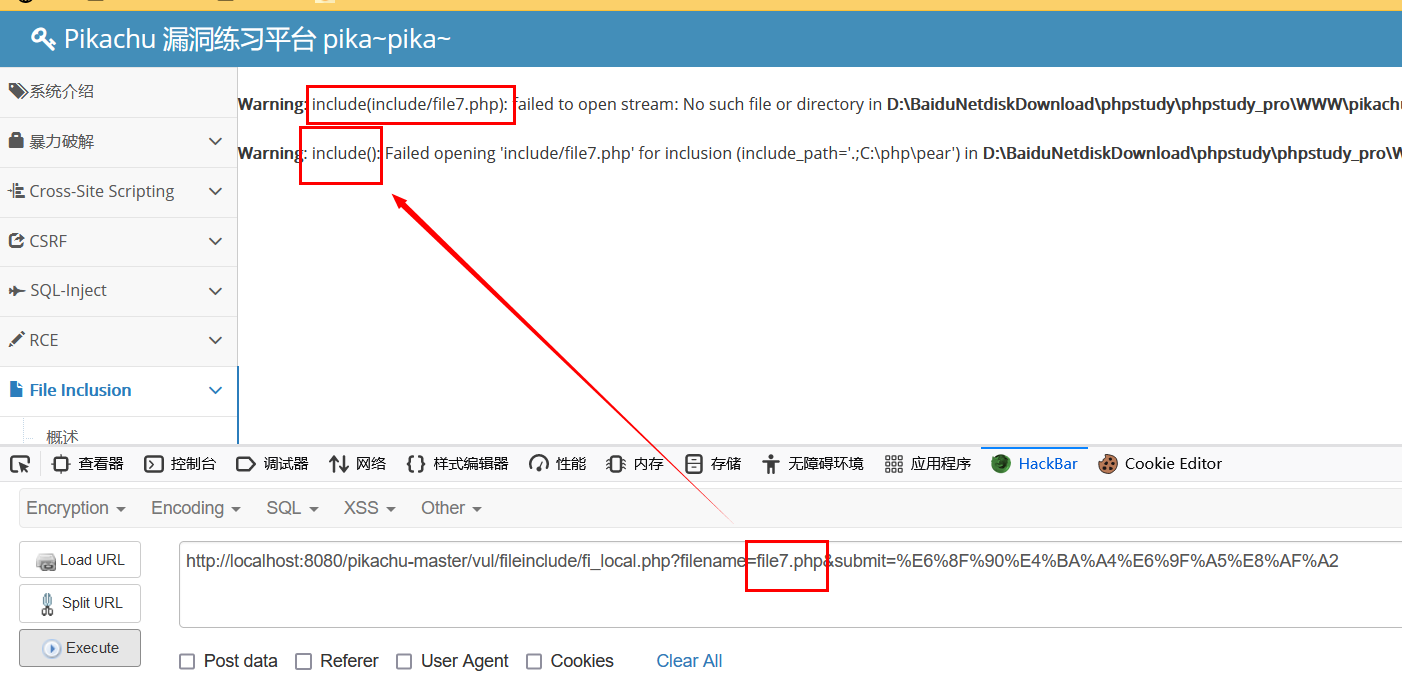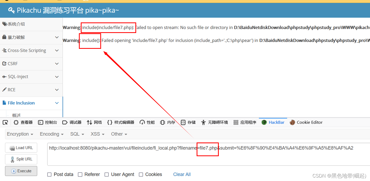 根据报错,可以看见,使用的是include()函数进行,文件包含