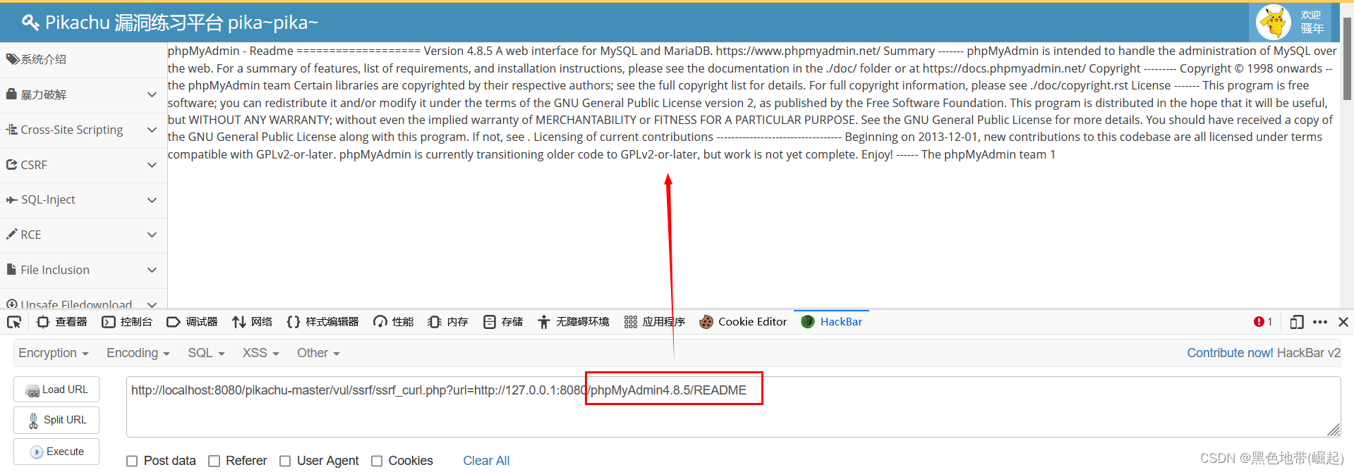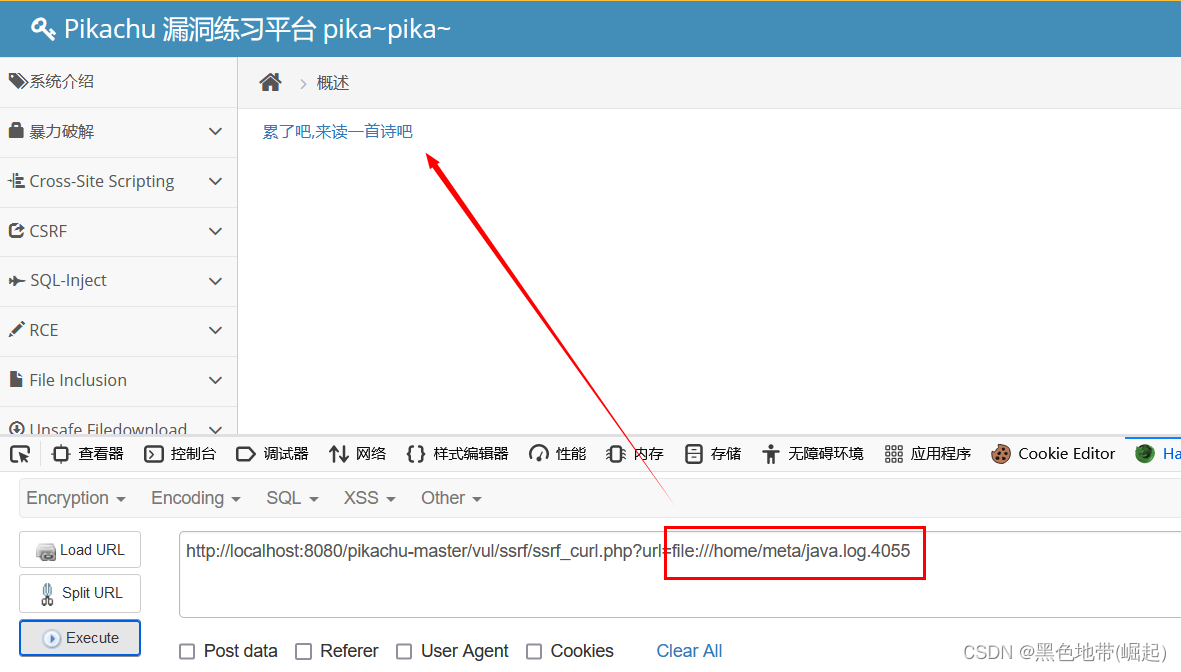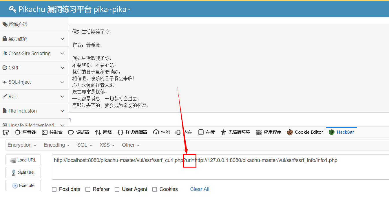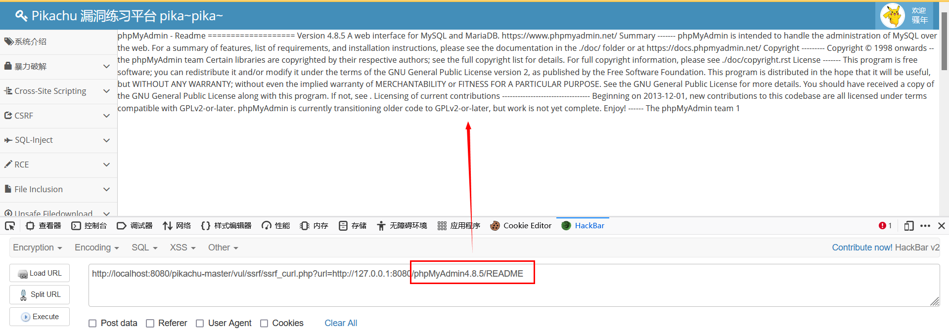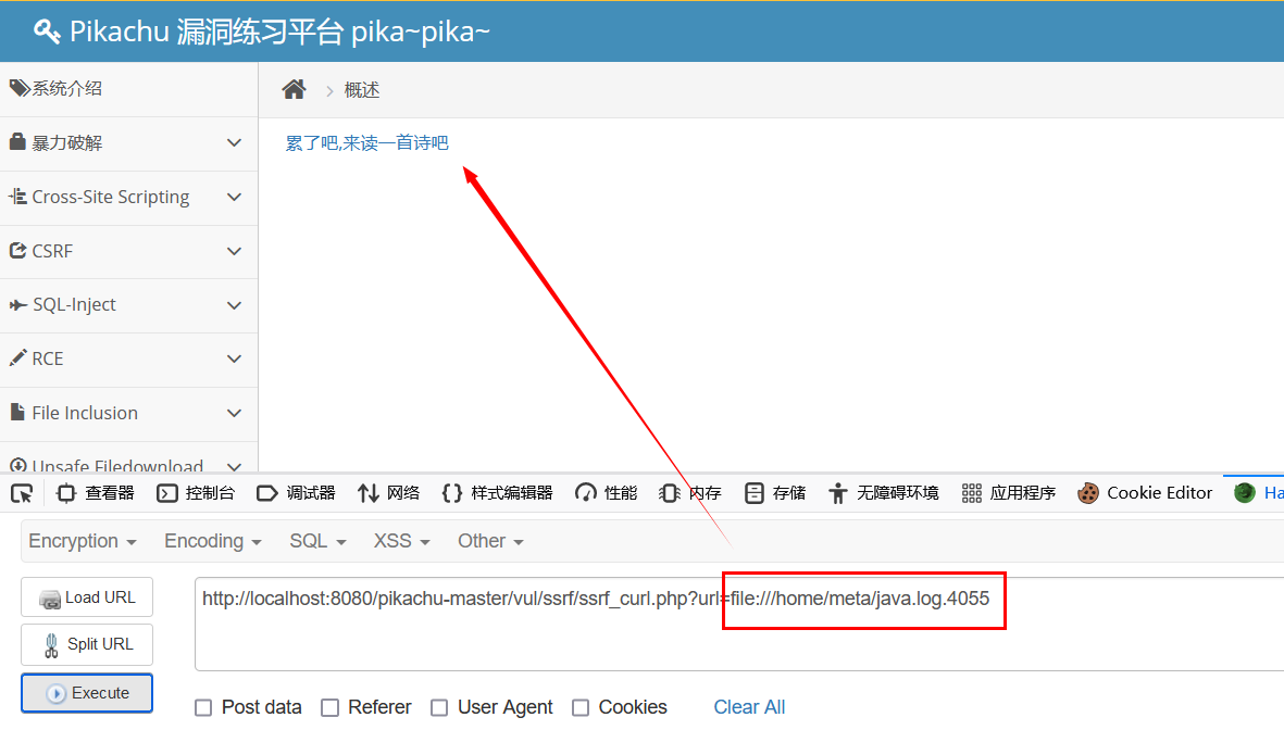 能够探测到内容,说明存在SSRF漏洞,并且进一步尝试其他操作