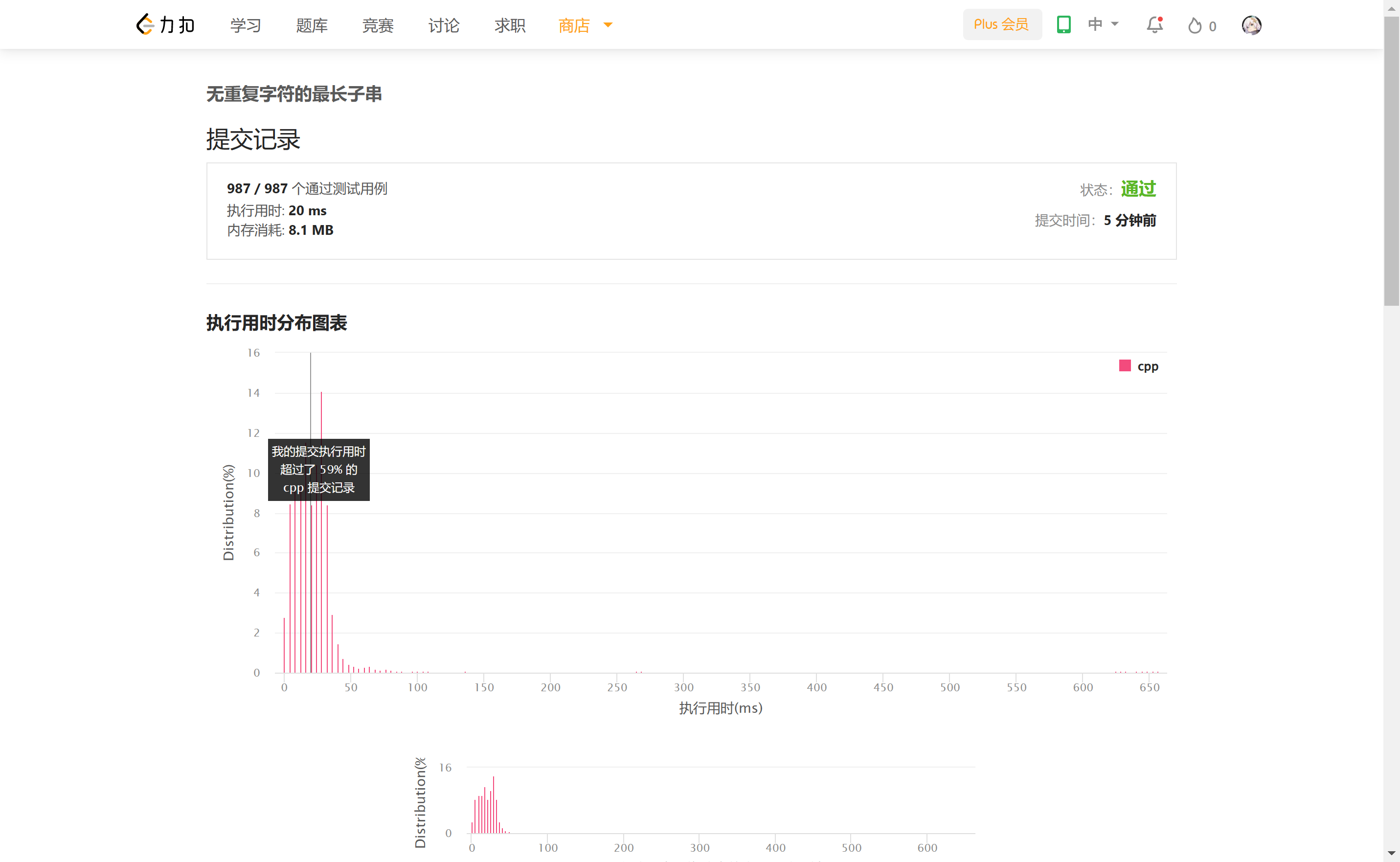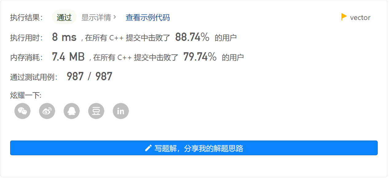 执行用时:8 ms, 在所有 C++ 提交中击败了88.74%的用户
