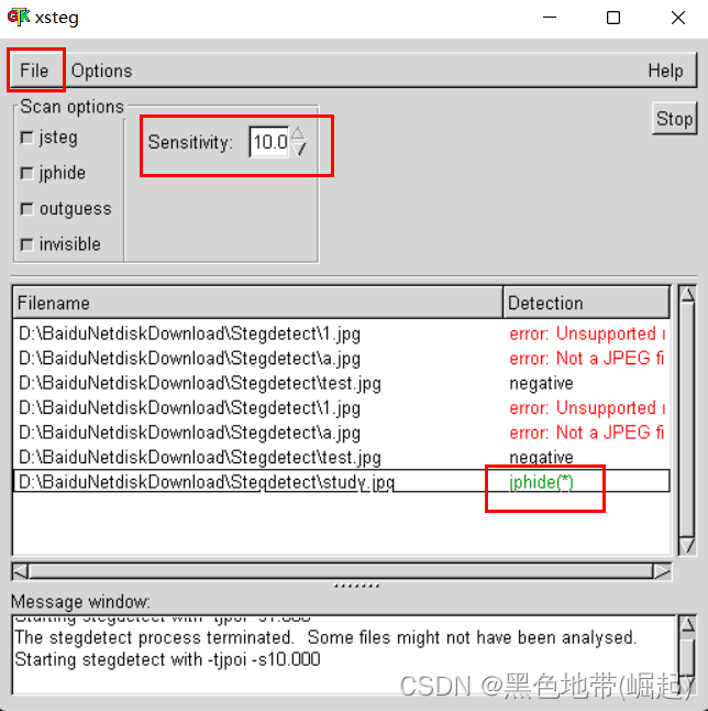 ②.\Stegdetect.exe -tjopi -s 10.0 1.jpg