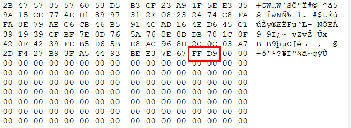 正常的JPEG文件末尾有一个标为"OxFF OxD9" 的文件结束符(End oflmage, EOI)。