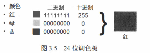 在一个图像的24位调色板中, 每8位表示一个原色, 也就是说红、 绿、 蓝分别有256个色调