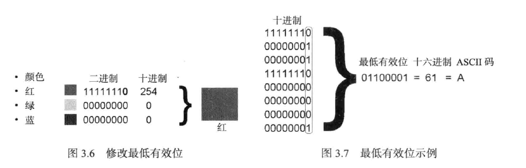 在隐写术中, 很重要的一点就是从原始数据或者原始承载文件的角度考虑问题。 使用插入方法, 不会改变原始数据, 而是为文件增加了额外数据。 使用修改方法则恰恰相反: 未增加额外数据, 却改变了原始数据。 对于整个文件来说, 这两个方法都修改了文件;但对千数据而言, 插入方法增加了数据, 而修改方法改变了原始数据。 通过后面内容的学习, 你会很快发现, 不少隐写程序同时应用了这两种方法。