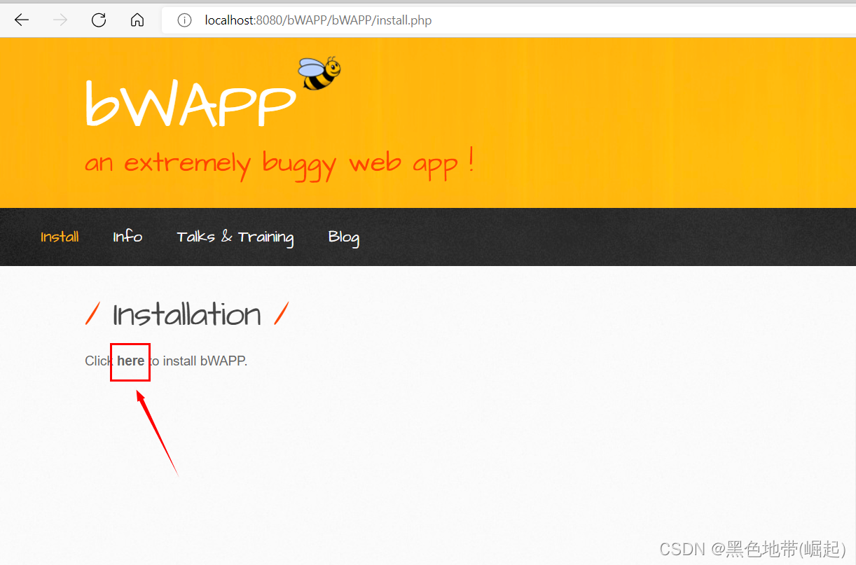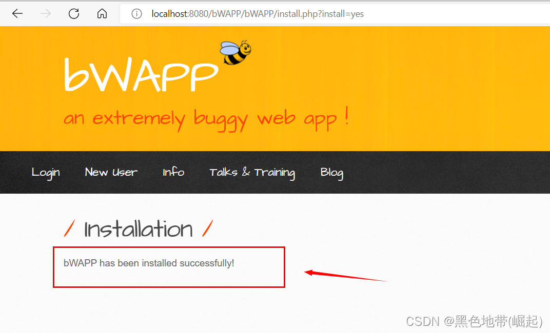 然后访问 bWAPP 进行安装:localhost:8080/bwapp/install