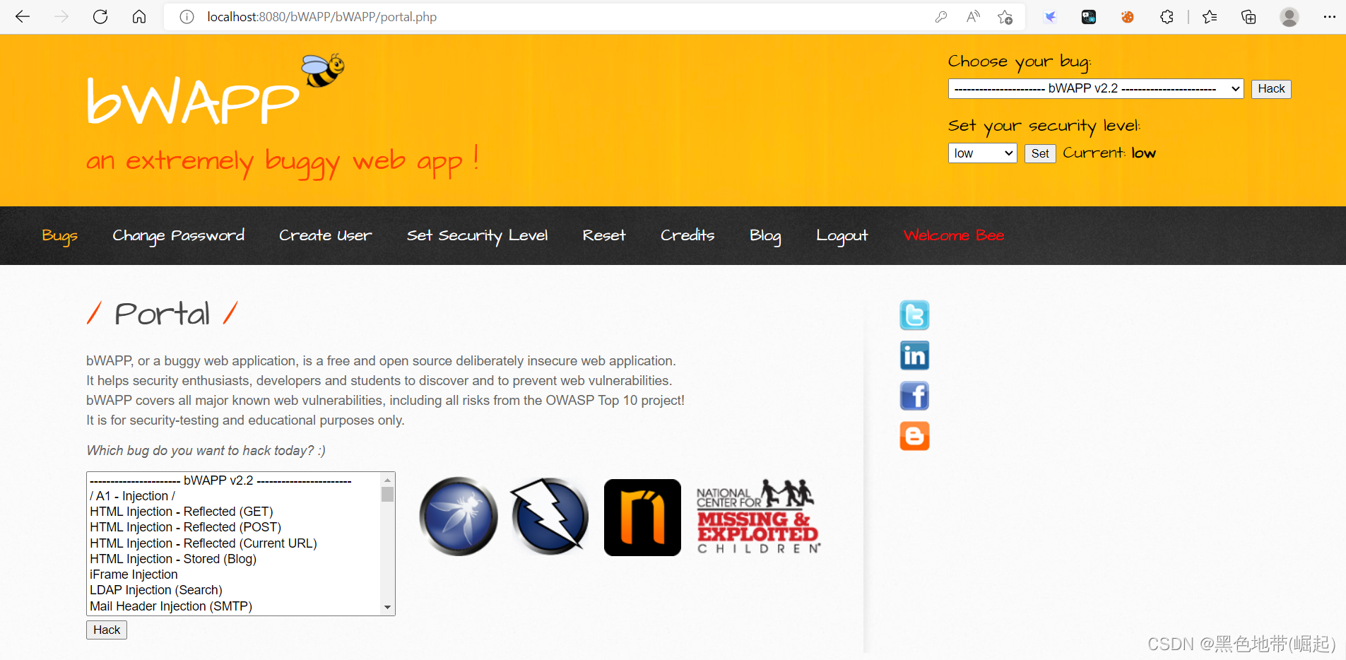 bWAPP 是一款非常好的漏洞演示平台,其包含有 100 多个漏洞。