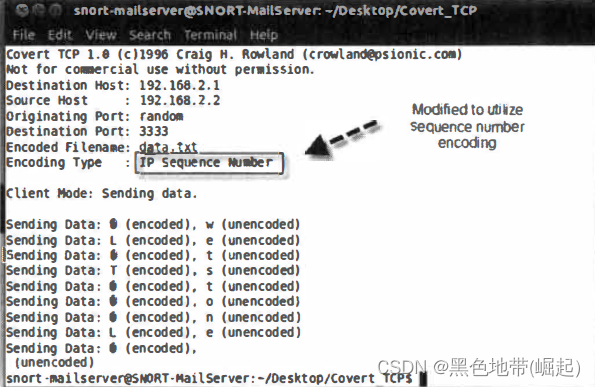 通过精细化掩盖方法来改进这个技术。 比如通过对传输的字符串进行异或(XOR) 运算来掩盖秘密消息。 这样仍然可以提高每个连续序列号的随机性。 这种数据隐藏或泄露方法也有局限性:每次连接只能发送1或 2 个字节。 但是, 如果只需传递密钥、 短消息, 或者警示信号的话, 这个方法是个不错的选择