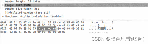 因为会话发起方(此处为客户端) 指定了初始序列号, 我们可以通过控制这个序列号来传递信息。 Wireshark中高亮客户端指定的序列号: Wireshark 界面底部为 TCP 原始报文中的十六进制序列号, 上方列表中为经 Wireshark 转化后的十进制序列号。 下面, 我们分析十六进制的序列号, 再按小端序将其手工转换为十进制数: