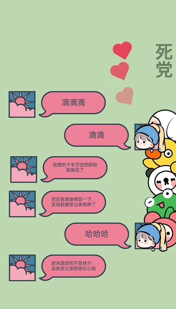 文字在图片右侧,自己没发言,就能很清楚的看到文字。还有一群可爱的小动物,为背景图增加了一丝趣味。