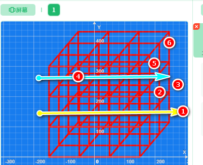 笔者采用的是 Z 方向驱动的绘制方法。如果要绘制一个 3 × 3 × 3 的魔方,在绘制了底面 3 × 3 的9个小立方体之后,接下来绘制 Z 方向第二排立方体,从左到右绘制,即下图黄色箭头所示的水平排。