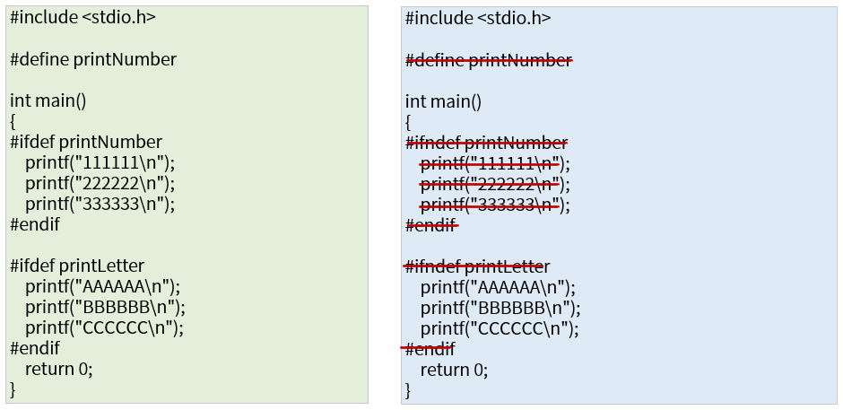 #ifndef到#endif之间的代码。 - 若被定义,则删除从