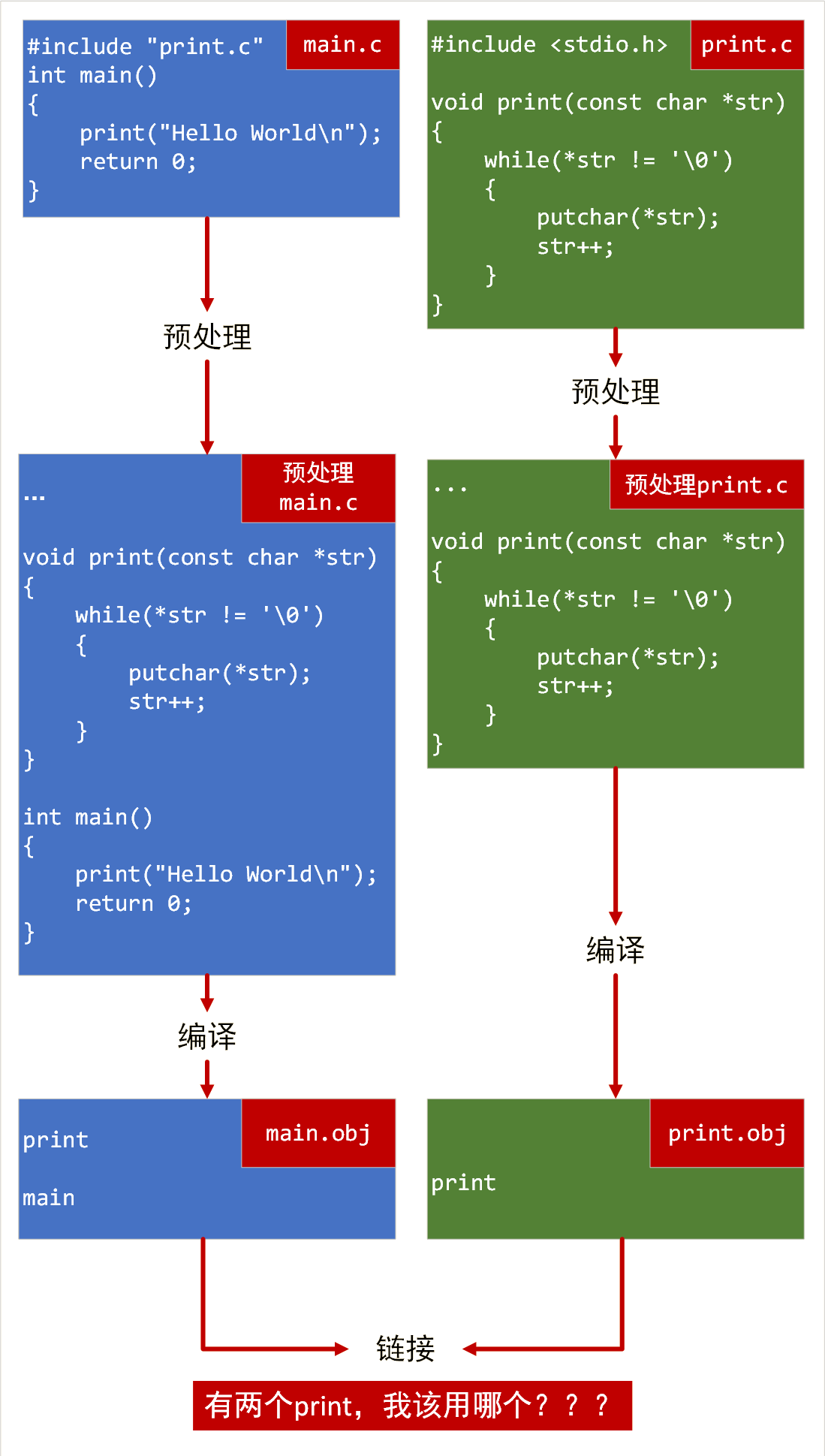 这种情况会导致文件main.c因为标识符重定义而编译失败