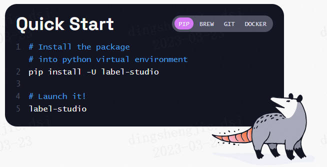 在终端(terminal)使用pip安装label-studio:
