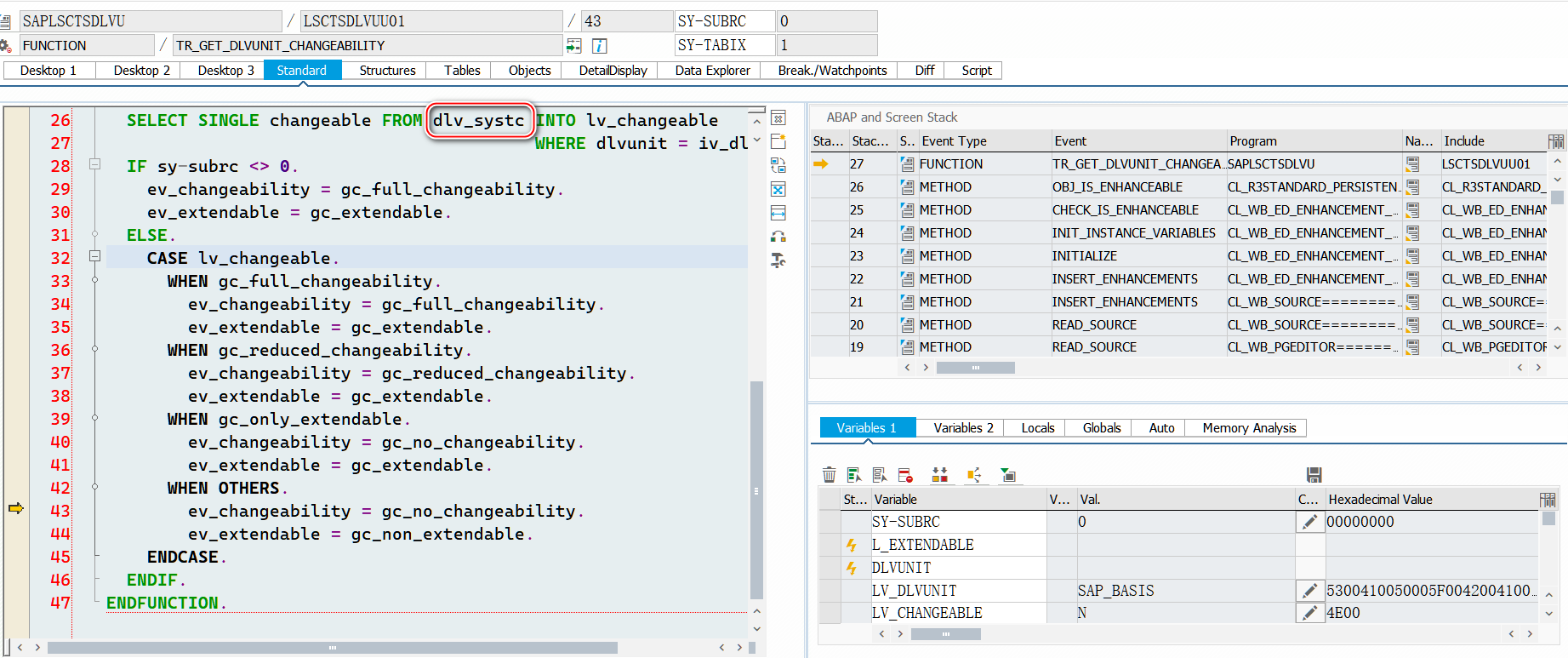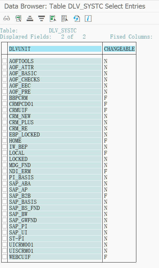 实际上,dlv_systc 这张表,描述信息 System Change Option for Software Components,存储的是每个 ABAP software component 的可修改性(changeability):