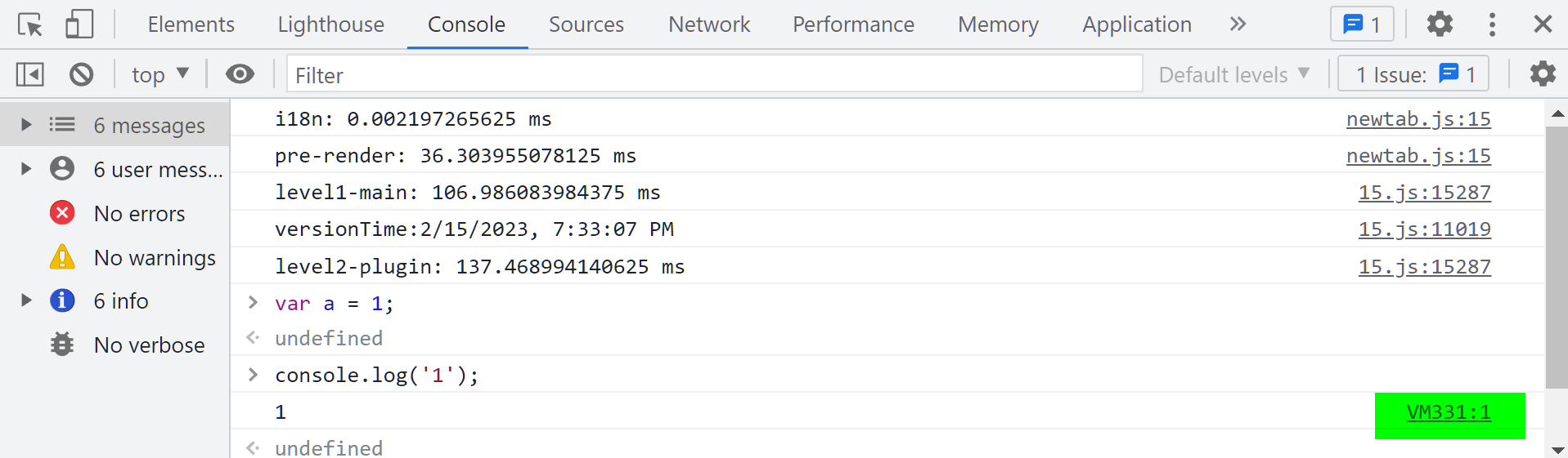 当你在Console面板中运行JavaScript代码时,这些代码会在当前选项卡或框架的虚拟机中执行。如果你在多个选项卡或框架中打开了开发者工具并使用Console面板,你可能会看到多个VM实例,每个实例都对应一个选项卡或框架的虚拟机。这些VM实例会按照它们所属的选项卡或框架进行编号,例如"VM123"、"VM234"等等。