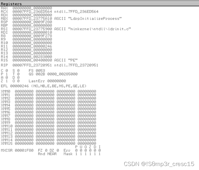 如图所示,寄存器窗口显示了当前程序执行状态的寄存器的值