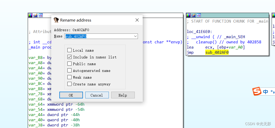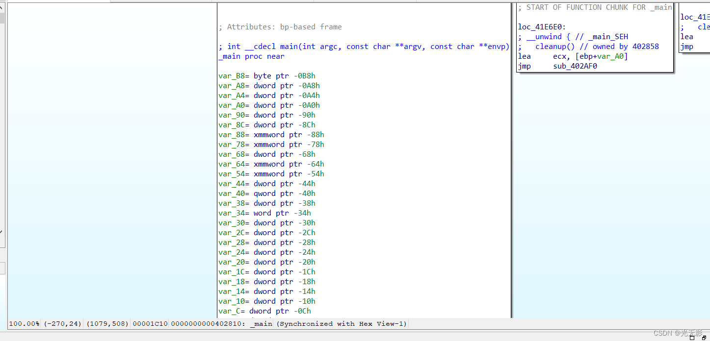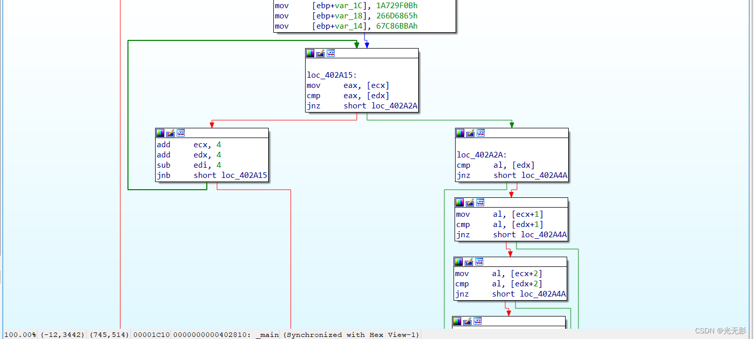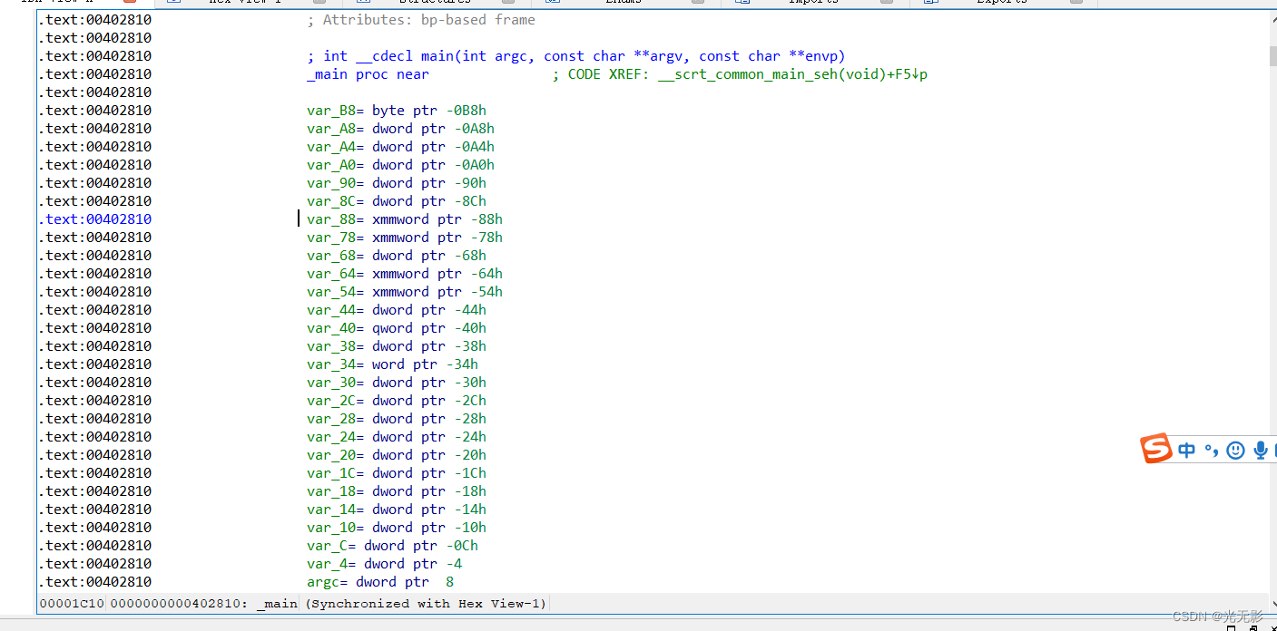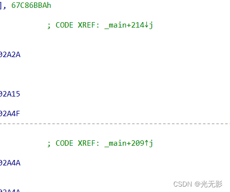 图中 ; CODE XREF: _main+209↑j是自动生成的表示此处有交叉引用的注释