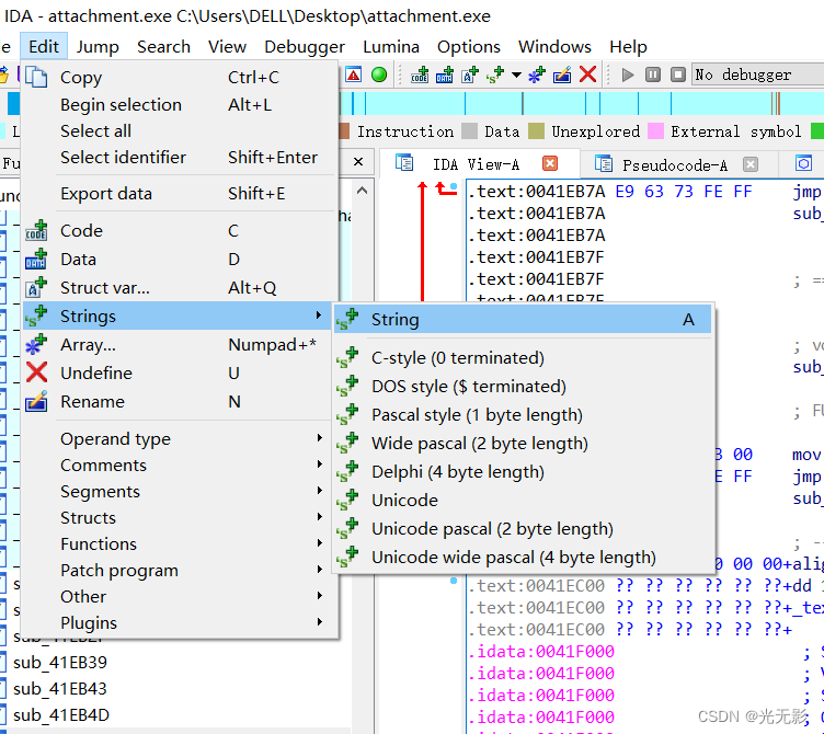 IDA能是识别大量的字符串格式,默认会搜索并格式化成C风格