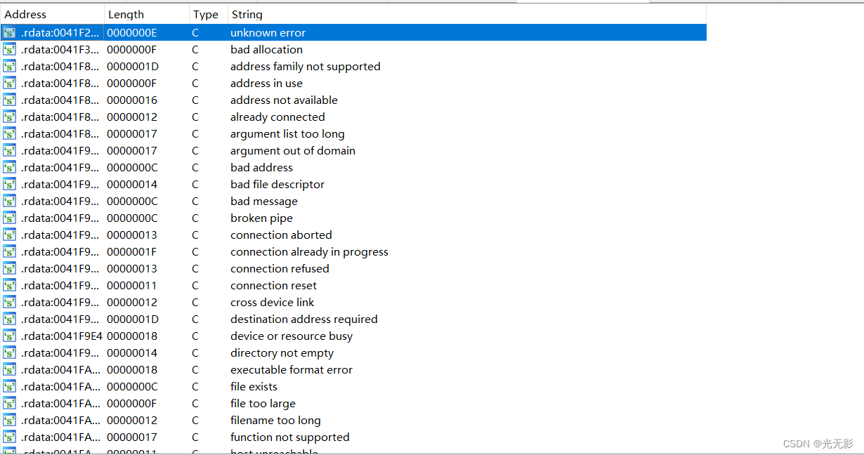 显示的是从二进制文件中提取出来的一组字符串,以及字符串所在的地址