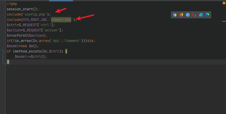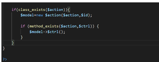 发现有两个方法,class_exists和method_exists,这两个函数是判断是否存在类和方法的,接下if内的语句判断,指导action是类名,ctrl是函数名,有点像路由