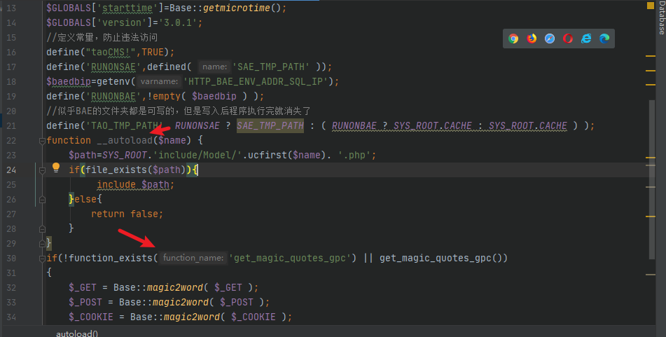 后续路由的调用。在代码30行去除 get_magic_quotes_gpc() 方法对特殊字符加载的反斜杠,这可能是