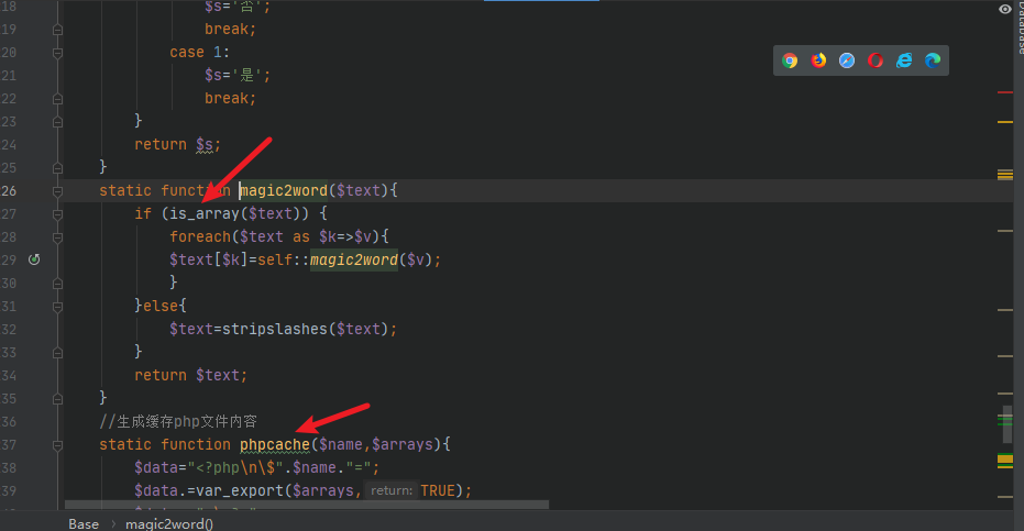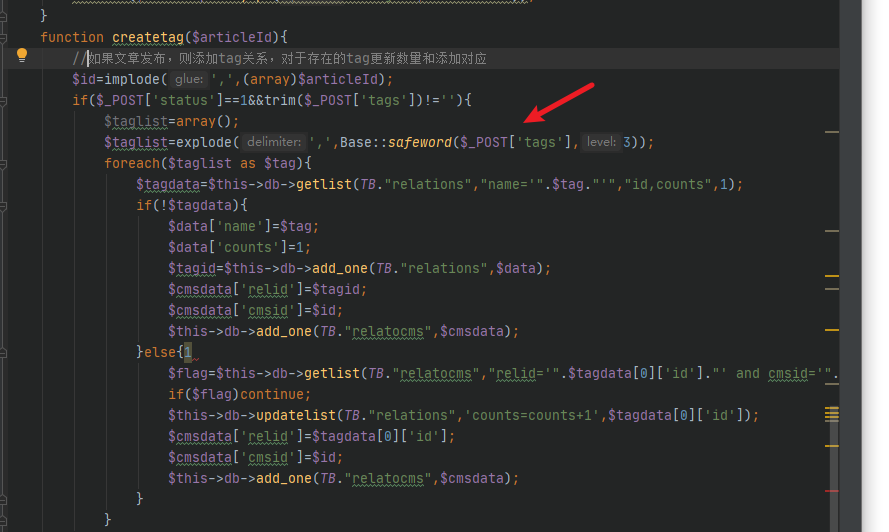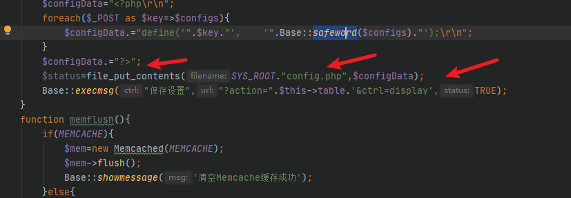 我们在搜索危险函数的时候发现一处很有可能getshell的地方,我们先看这里的$arrayData是否可控。