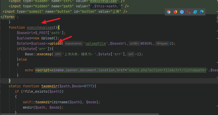 通过这里我们发现 executeupload() 方法中调用了Upload类下的 upload() 方法,这里的上传主要调