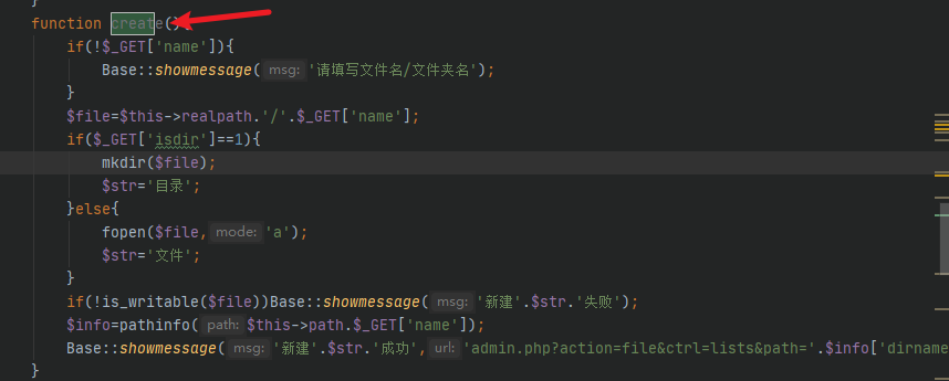在 create() 方法中,首先接收文件名 name ,然后通过 isdir 来判断创建的是目录还是文件,然后分别