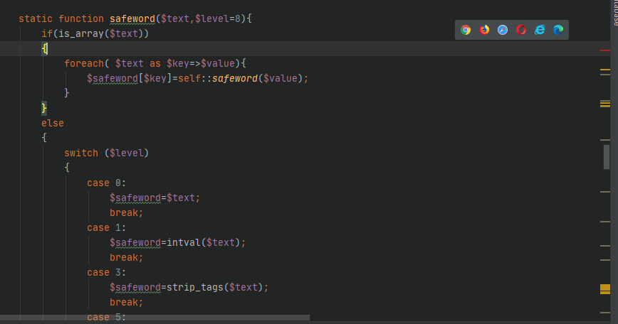 在 safeword() 方法中需要传入两个参数,一个是需要过滤的字符串,另一个参数则决定走哪个case。