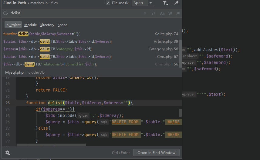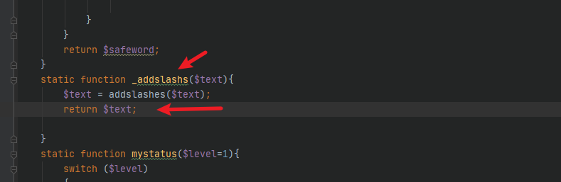 找到执行sql语句的函数,跟进发现有个存放sql方法的文件阅读代码,发现有过滤函数对变量进行了一些过滤处理。