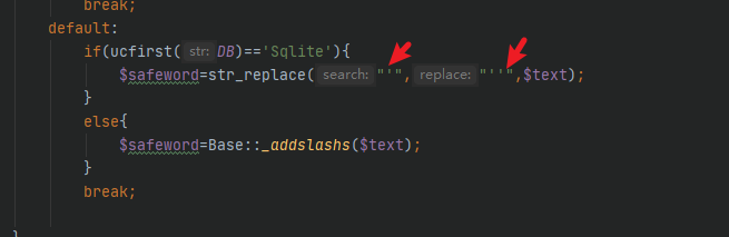 所以我们只能走上面的if条件,这里只要数据库为 Sqlite ,下面的单引号会被替换为两个单引号(当时以