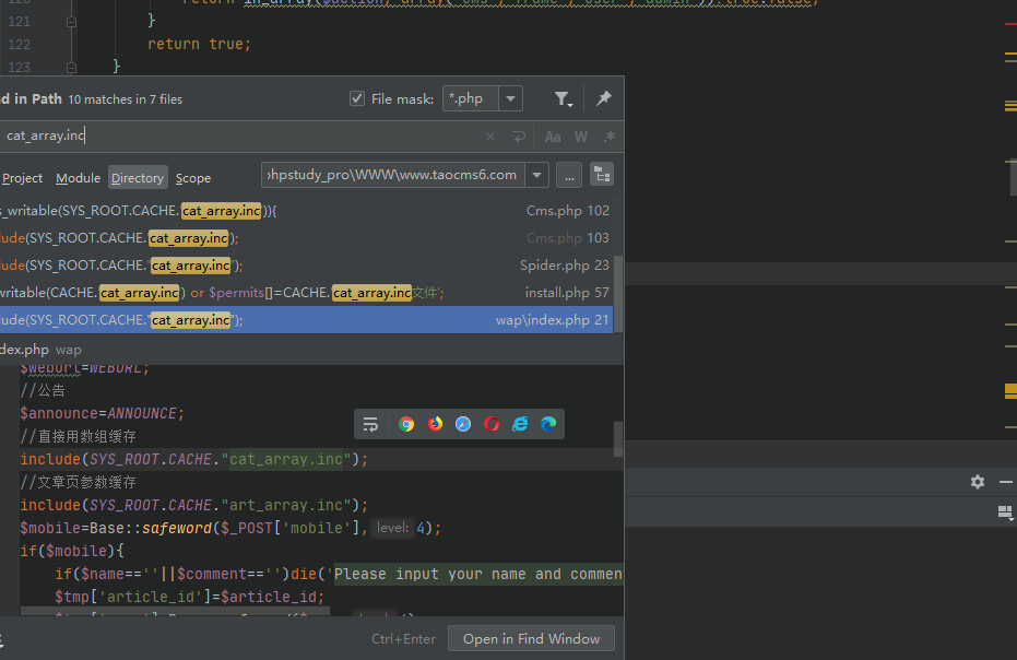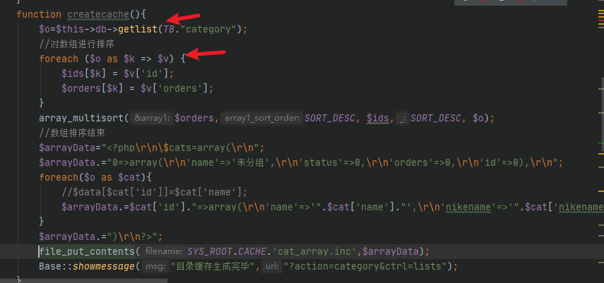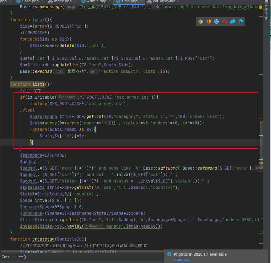 cat_array.inc 并不能解析,这里需要找到一处可以包含该缓存文件的地方。