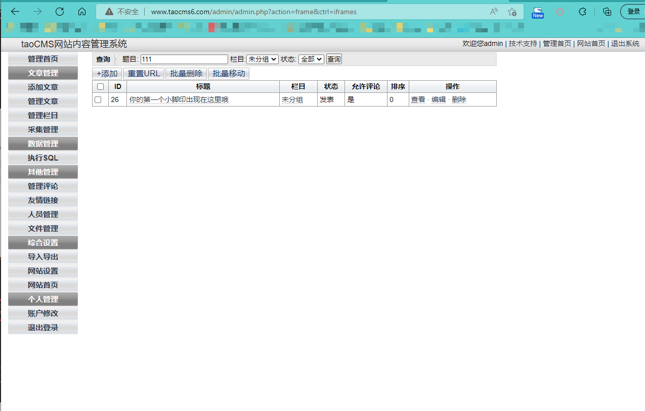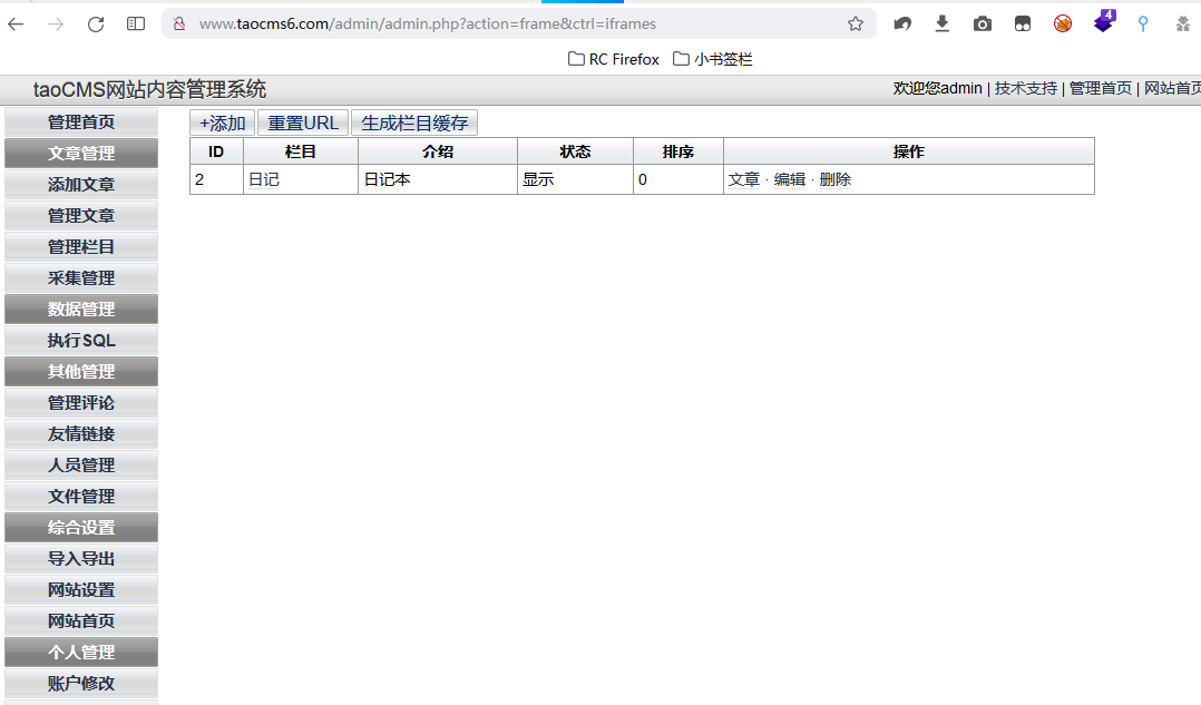 从数据内容可以看出这里的功能点其实就是 管理栏目 中的内容,这里就可以添加内容。