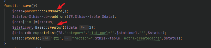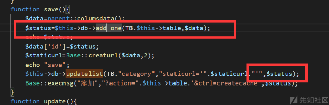 lists方法也存在注入点,继续发现getlist语句的参数由$addsql控制,而该参数能够拼接,发现name参数被用安全方法过滤了危险字符,所以主要看cat和status参数。,在save方法。