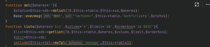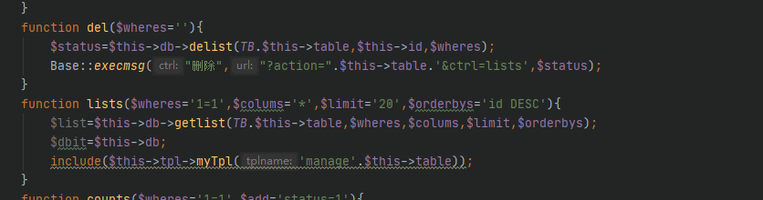 最后找到几个未过滤的函数方法:delist、getquery、updatelist、get_one、getlist