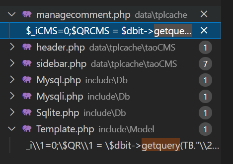 通过搜索该文件可以发现有好几处包含了该模板文件,所以我们这里就可以通过写入缓存文件getshell