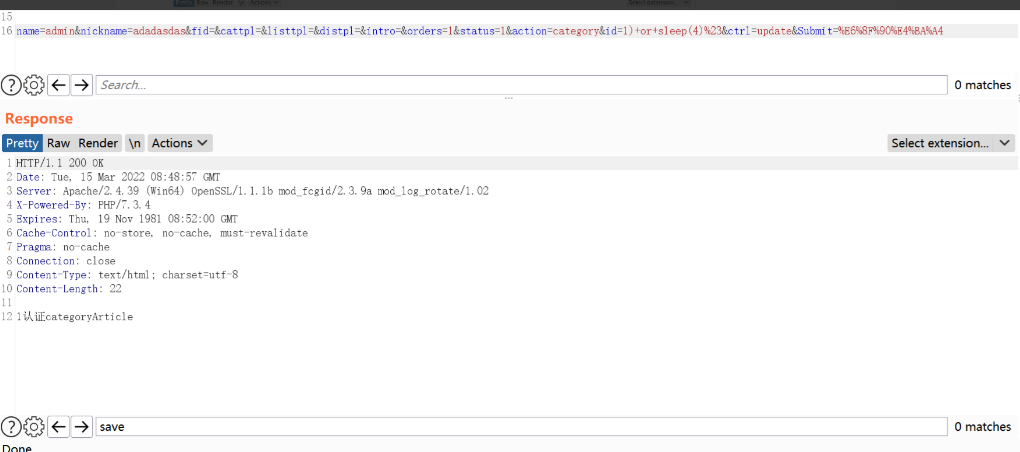 发现回显没啥特征进行,采用延时确认,发现成功延时12s,我们的语句写的是4s,说明经历了三次注入,后续再研究