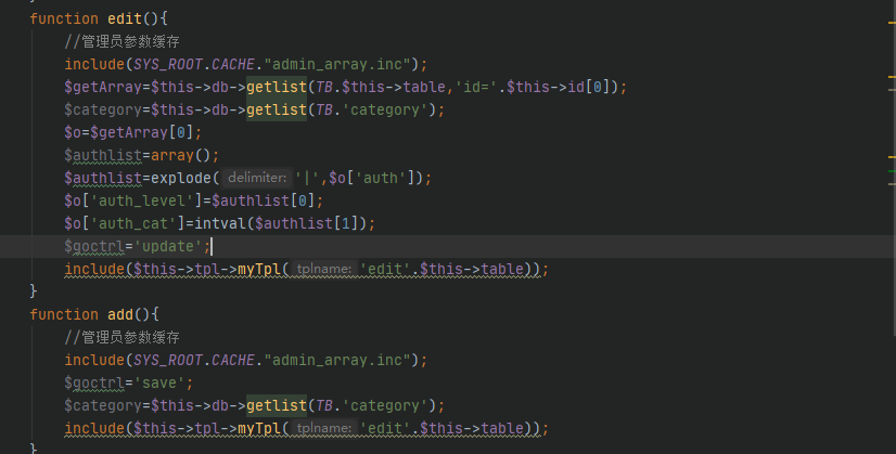 全局搜索getlis,在admin.php中找到edit方法存在getlist的调用,并且能够可控参数