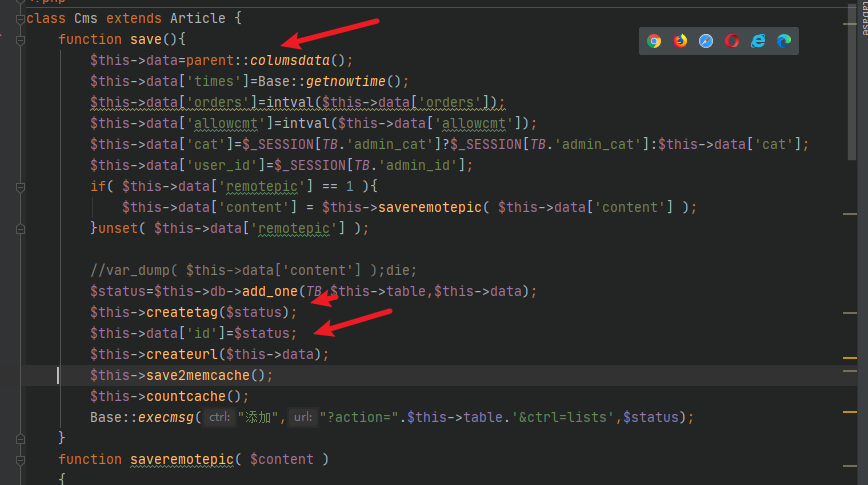 在后台管理系统中没看到该模块的调用,然后看CMS类的时候发现CMS继承了Article类,所以看CMS类就好了