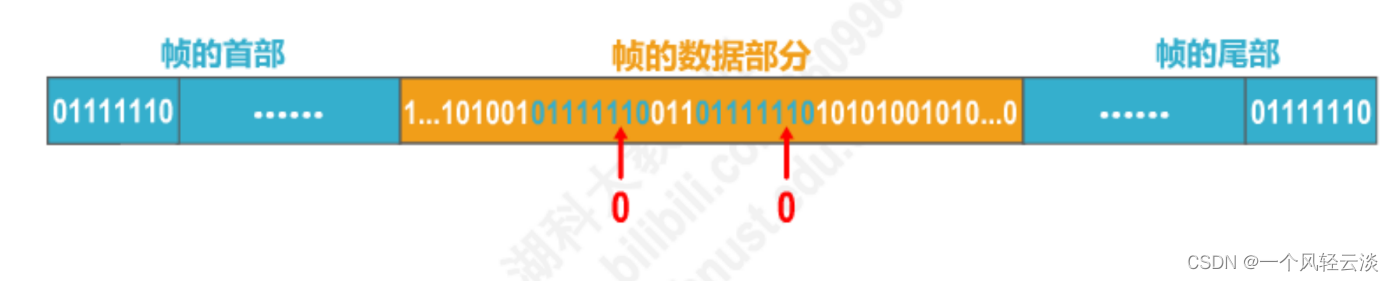 透明传输-->面向比特的同步链路采用插入比特0的比特填充法