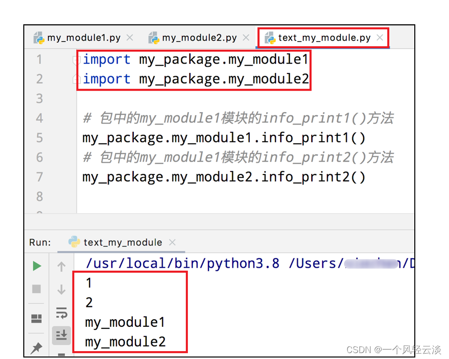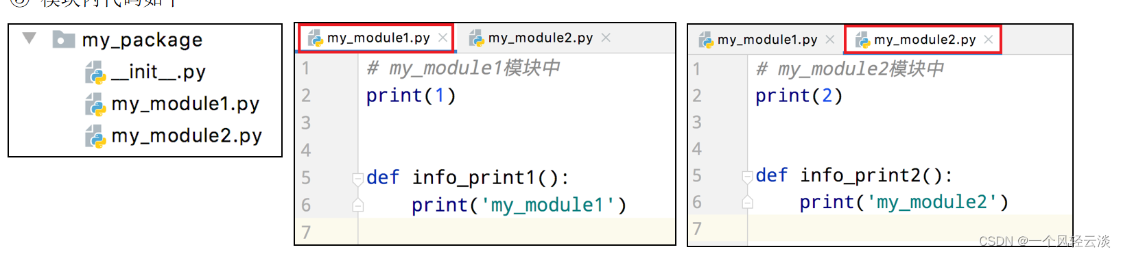 ② 新建包内模块:`my_module1` 和 `my_module2`