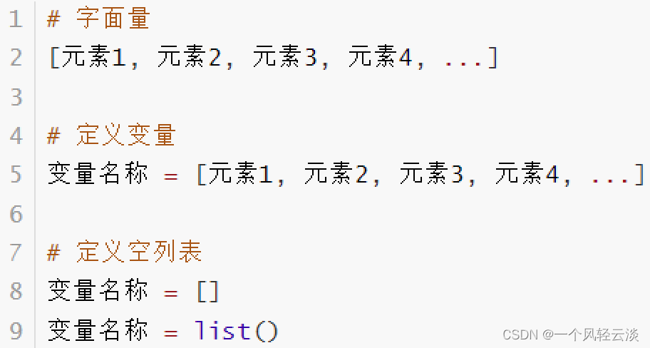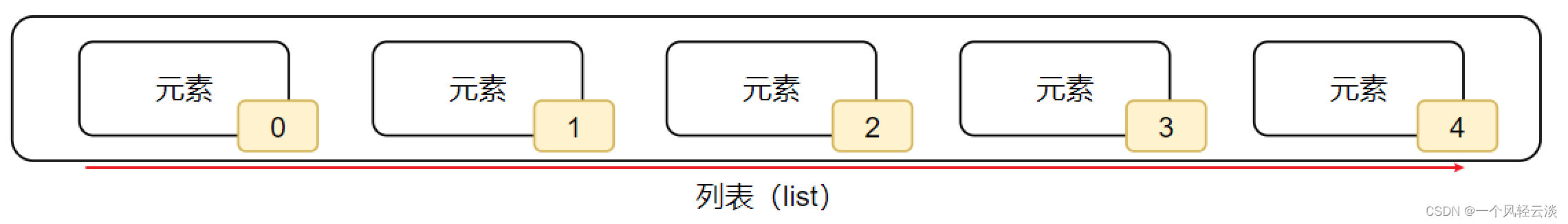 如图,列表中的每一个元素,都有其位置下标索引,从前向后的方向,从0开始,依次递增 我们只需要按照下标索引,即可取得对应位置的元素。