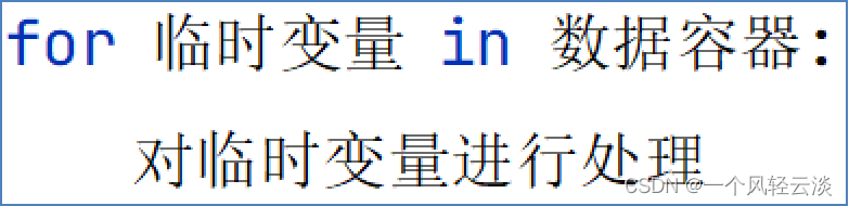 表示,从容器内,依次取出元素并赋值到临时变量上。 在每一次的循环中,我们可以对临时变量(元素)进行处理。