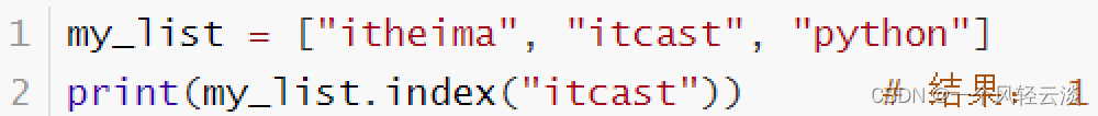 功能:查找指定元素在列表的下标,如果找不到,报错ValueError