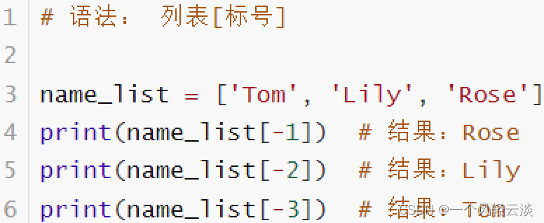 或者,可以反向索引,也就是从后向前:从-1开始,依次递减(-1、-2、-3......)