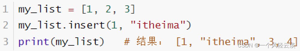 语法:列表.insert(下标, 元素),在指定的下标位置,插入指定的元素