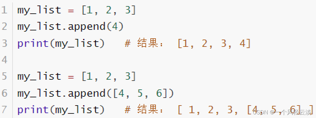 语法:列表.append(元素),将指定元素,追加到列表的尾部