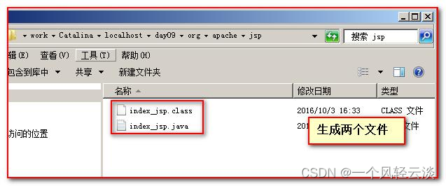 day09 目录马上会生成 org\apache\jsp 目录。 并且在会中有两个文件。